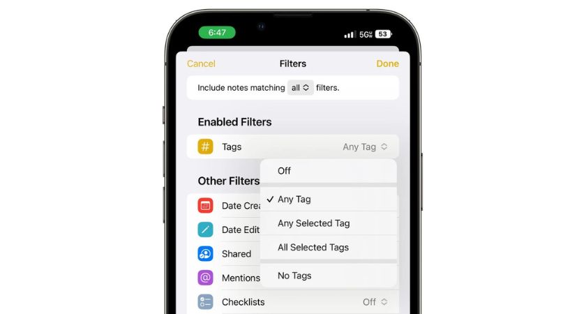 Thư mục Thông minh trước đây chỉ dựa trên các thẻ, vì vậy đây đúng là một điều mới mẻ cho ghi chú trên hệ điều hành iOS 16.